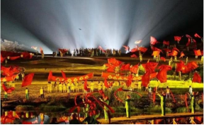 黨員隊伍來到了露天的紅軍劇場。華燈初上,大家集體觀看大型實景歌舞史詩——《井岡山》。劇情共分為《血》《旗》《燈》《情》《火》《路》六個章節,通過紅軍后代,即井岡山兒女的敘述,展現了1927年那段永不磨滅的歷史記憶。600多名拿山鄉、廈坪鎮的農民,身為當年的紅軍和赤衛隊員的后代,他們用自己的真情實感,還原歷史,為我們帶來一場視聽盛宴。