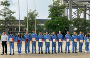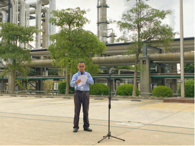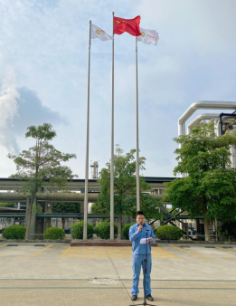 隨后,宇新股份董事、副總經理湛明作標題為《修整、蓄勢,揚帆起航》的國旗下講話。在講話中,他首先向工作在各崗位的同事及家屬致以節日真摯的問候和崇高的敬意,衷心感謝每一位同事的努力付出,感謝大家為宇新大家庭做出的卓越貢獻!他指出:幸福生活是奮斗出來的!我們宇新人腳踏實地,邁過了困難的2020。經過大檢修的修整、順酐裝置建設的收尾,我們蓄勢待發,卓越的未來可以預見;但這可期的未來仍需要我們一起共同努力!共同當好宇新這艘大船的優秀水手,揚帆起航,創造美好生活,享受真誠的回報!