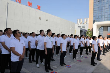 最后,全體宇新人一起用最響亮的聲音喊出“宇新是我家,發展靠大家”的口號,升旗儀式在激越的口號和擊掌聲中結束。此次司慶升旗儀式吹響了拼搏的號角,全體宇新人將以更加頑強的意志,攻堅克難、奮勇爭先,全力推進項目建設和企業發展進程,攜手并肩為把宇新打造成全球知名的一流化工科技型企業作出自己的貢獻!