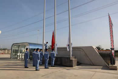 8點10分,旭日初升,宇新股份、宇新化工、宇新新材、博科新材全體員工統一著公司文化衫,迎著朝陽,精神抖擻地列隊集合。8點30分,劉總宣布升旗儀式開始,旗手和護旗手們精神飽滿、氣宇軒昂,邁著整齊劃一、鏗鏘有力的步伐,護著旗幟入場。伴著雄壯的《義勇軍進行曲》響起,五星紅旗在晨曦中冉冉升起,全體員工行注目禮,莊嚴肅穆。