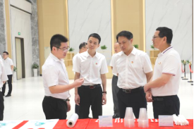儀式結束后,蔡書記一行前往公司中控室進行了詳細的參觀和調研。在參觀過程中,胡董、胡總就公司的發展歷程、發展愿景、裝置生產建設情況、技術研發、可降解塑料的應用前景等進行了詳細介紹,使蔡書記一行對公司的整體發展狀況和發展前景有了更全面的了解。